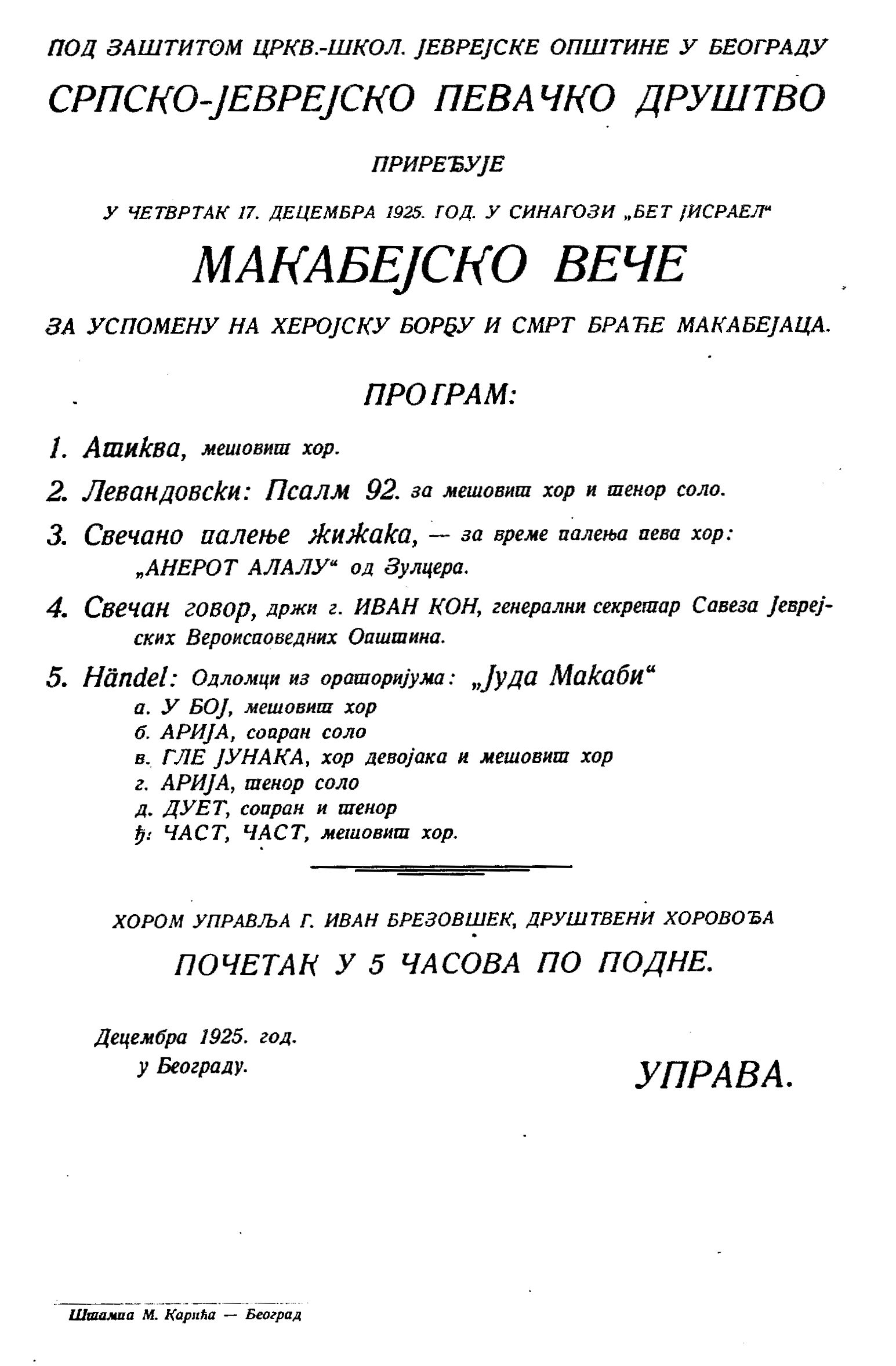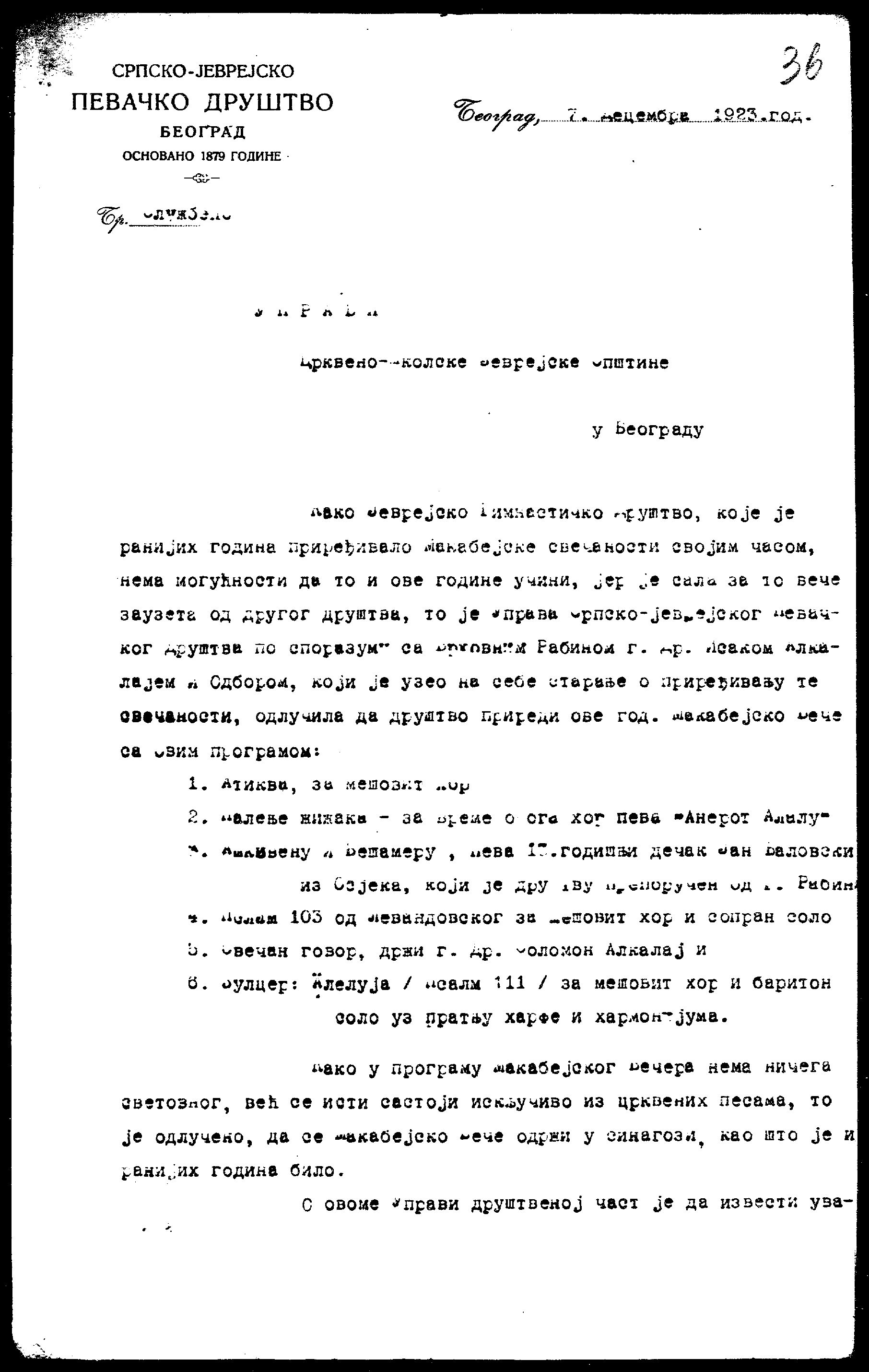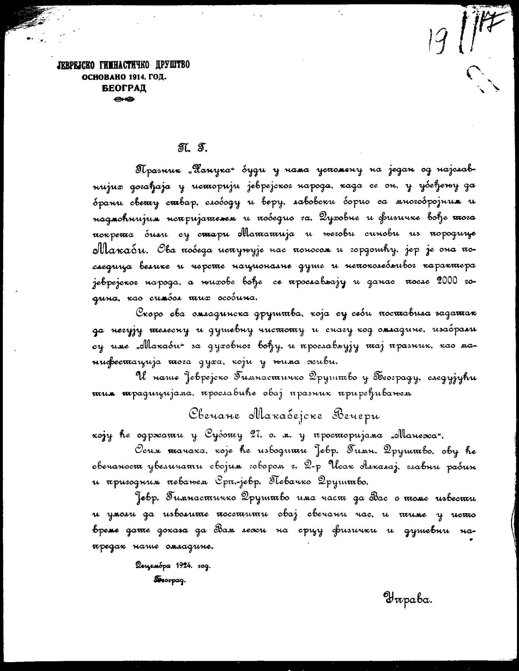 Dokumenta o proslavi Hanuke pre 100 godina