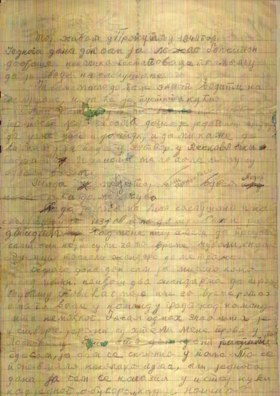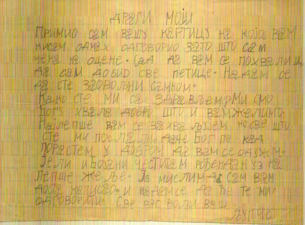 Pismo iz 1943 za vreme skrivanja u Srbiji